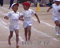 かけっこも今年は一番になれてうれしかった。(写真 上)