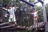あがるのはこわかった。でもバランスをとってわたるのはうまくできた。(写真下)
