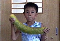 8月 3日 畑で大きなキュウリがとれました。(写真上)ひるから海で泳ぎました。
